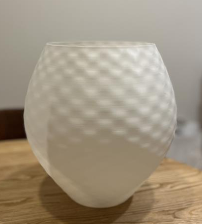 0.4mmのノズルの積層のためおよそ厚み0.8mm程度になっており、ランプシェードなどにすると光を通してくれます。